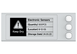 WT029ASmart Warehouse 2.9-inch E-paper Screen Picking Label with ButtonThe device features three independent buttons that enable seamless parallel picking of multiple work orders, significantly reducing errors and increasing throughput.ColorGrayDimension116.5*45.8*17.2 mmBattery Lifetime5 Years(3 refreshes, 1-hour lighting daily)Display TechnologyEPDDisplay ColorBlack/White